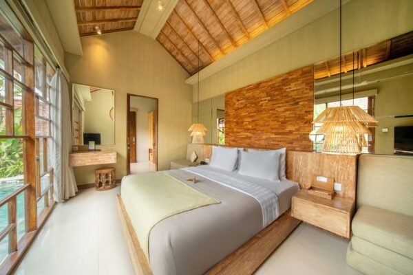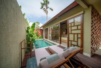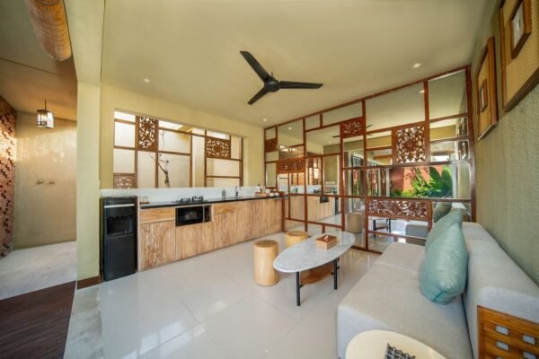 Located in a quiet area on the border of Canggu, you’re just minutes away from Berawa Beach, Batu Belig, and Finn’s Beach Club, yet tucked away in peaceful serenity.