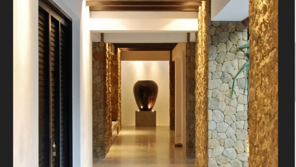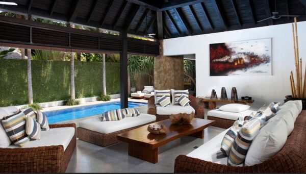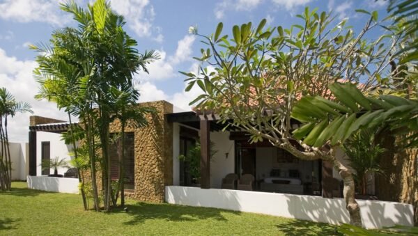 Moments from Echo Beach and securely set within high walls is this elegant four-bedroom villa, skillfully sculpted from interlinking pavilions, courtyards and covered walkways.