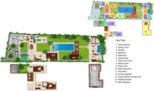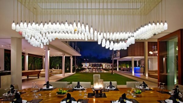 The villa ensuring that guests will always find a private spot for peace and quiet, somewhere to laze in the sun, to dance, to play games, or watch movies both indoors and out. Perfect for families, friends, parties and weddings, This villa is fully staffed by a professional team including butlers, a gourmet chef and security guards. A car with driver is available at a special rate.