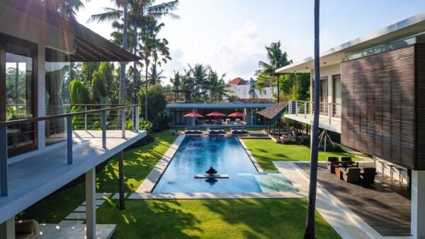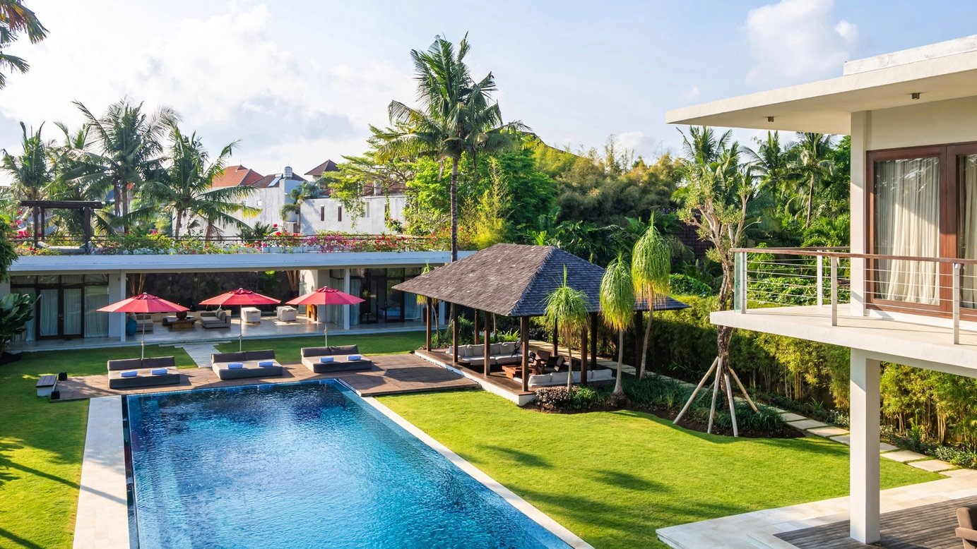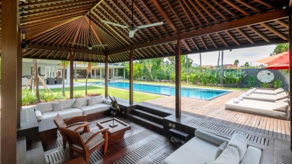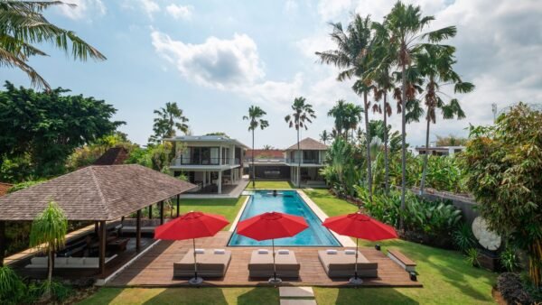 Tucked away in the heart of Berawa, Canggu, this expansive five-bedroom villa is a tropical playground made for celebrations, relaxation, and unforgettable holidays. With open-air lounges, a 22-metre pool, a professional DJ booth, and even a rooftop sun deck, this luxurious retreat is built for families, friends, and party lovers alike.