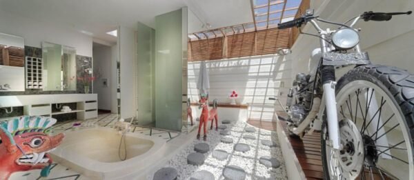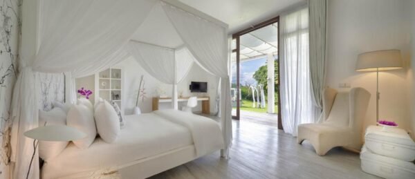 Tucked amid the emerald rice paddies of rural Canggu, this 6-bedroom private villa is your peaceful escape just minutes away from Bali’s hippest beach scene. Designed with whitewashed elegance and spacious tropical charm, the villa merges Balinese soul with modern luxury — perfect for families, groups, intimate events, or wellness retreats.
