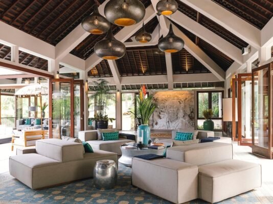 ✔️ Outdoor pavilions, spa area & multiple dining zones