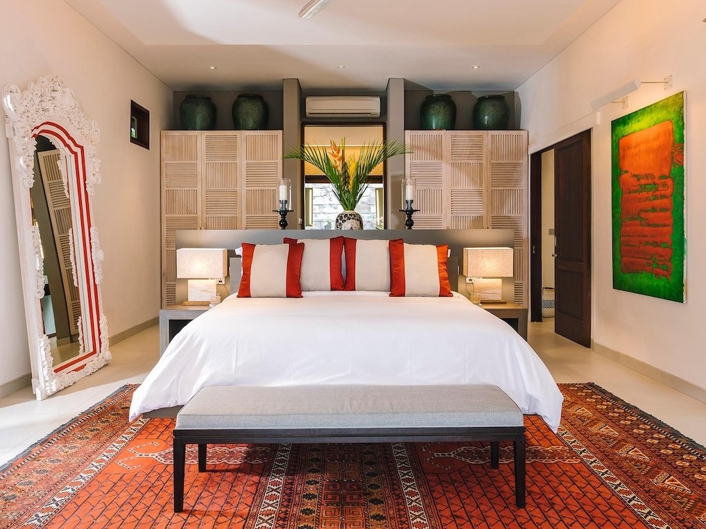 Set across two hectares of terraced gardens by a river in Bali’s lush Tabanan Regency, this spectacular 5-bedroom destination villa is a dream for large families, wellness retreats, or intimate celebrations. Just 10 minutes from Tanah Lot Temple and surfing beaches, the estate is fully staffed and filled with world-class facilities including a home cinema, games room, gym, tennis court, spa, and more.