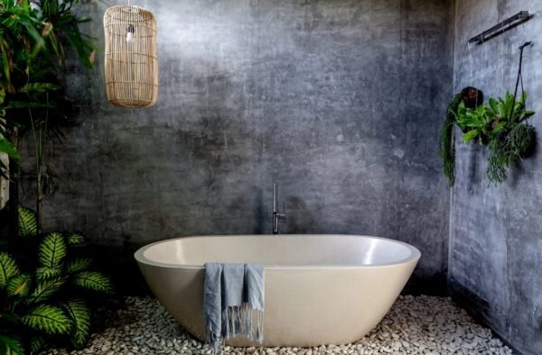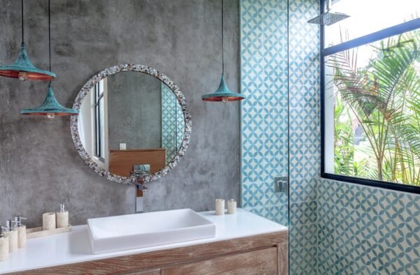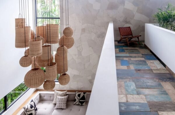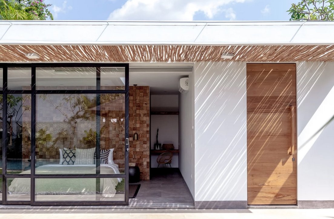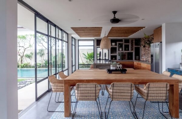 Nestled on a spacious 700 sqm site, this stunning two-storey villa perfectly blends modern architecture with natural elements. Designed by Felipe González Jiménez de la Espada of Sukyf & Architects, the property offers an oasis of calm surrounded by lush greenery — just steps away from Canggu’s lively cafés, restaurants, and bars.