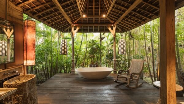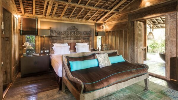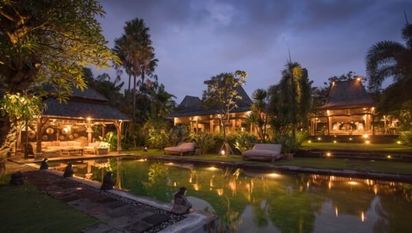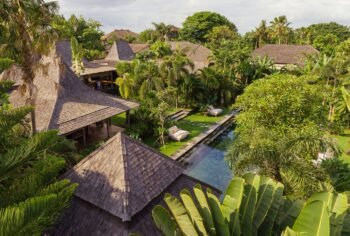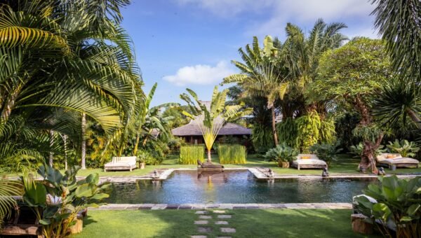 Lush and peaceful Villa in Canggu, Bali, stands out from other luxury villas for its close-to-the-beach location and chic heritage style. Open-air living pavilions and five splendid ensuite bedrooms are nestled throughout vast terraced gardens around a 20-metre swimming pool.