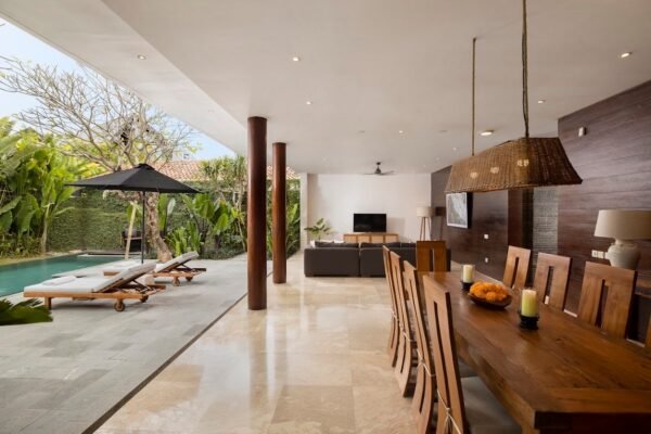 This Canggu Villa in Berawa is the perfect getaway for those who want to indulge in luxury. This double-storey three-bedroom villa boasts a modern design and top-notch amenities.