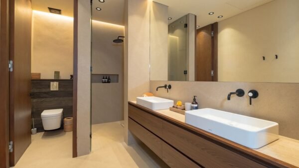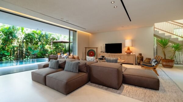 Tucked away in Berawa, Canggu, this chic 4-bedroom villa offers a tranquil coastal escape just moments from the beach. Perfect for families or groups, the villa combines modern design with tropical charm, creating a serene environment while keeping you close to Berawa’s cafés, shops, and beach clubs.
