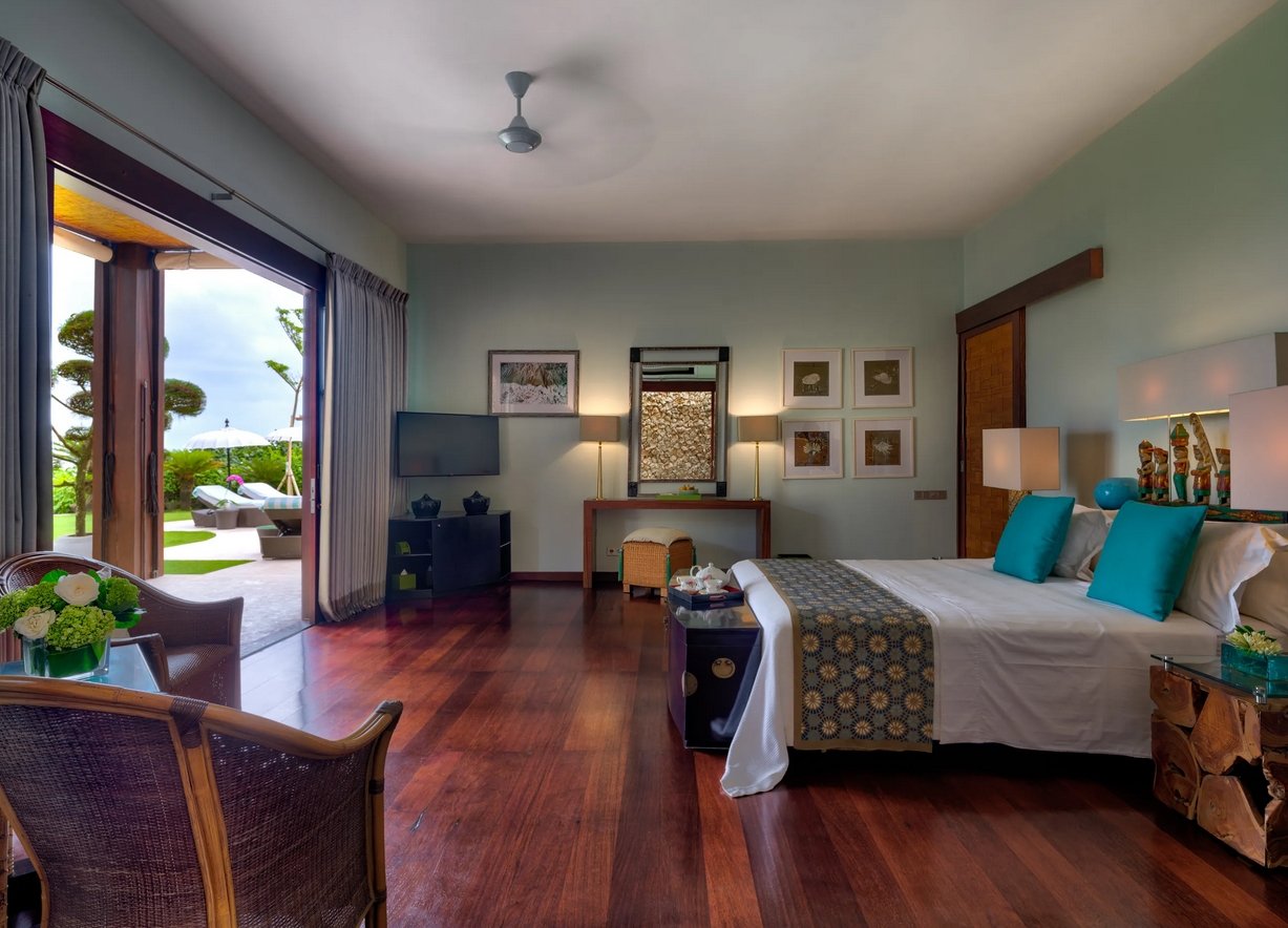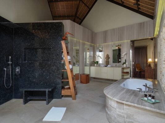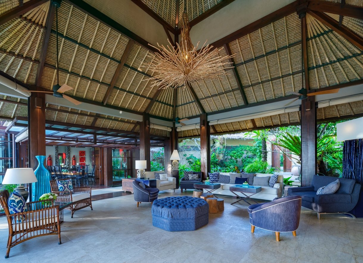 Built seamlessly into the natural contours of the land, the villa features two elegant buildings connected by a single-storey wantilan-style pavilion. The spacious living area opens to the outdoors, allowing ocean breezes to flow freely throughout the space. Enjoy alfresco dining with panoramic sea views or take a refreshing swim in the stunning 20-meter infinity pool that appears to merge with the horizon. A separate children’s pool ensures safe enjoyment for younger guests.