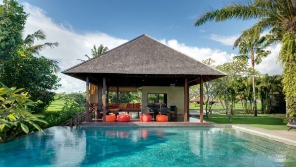 Five-star service and the ultimate in private luxury villa accommodation awaits at the sublime villa. Just a five-minute walk from the beach in Bali’s popular Canggu district, 5-bedroomed villa can be rented in conjunction with a romantic one-bedroom suite with its own plunge pool, creating a stunning retreat for family and friends and an unforgettable venue for weddings and special events.