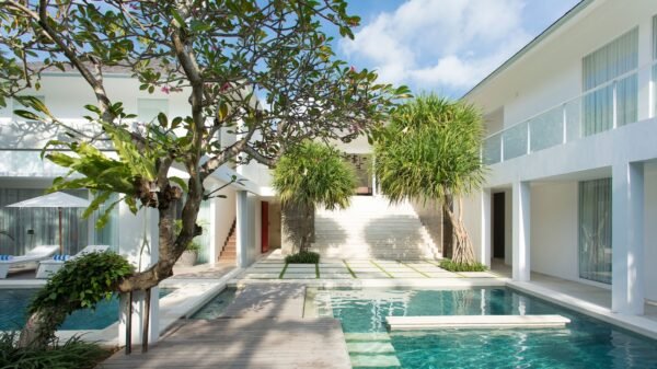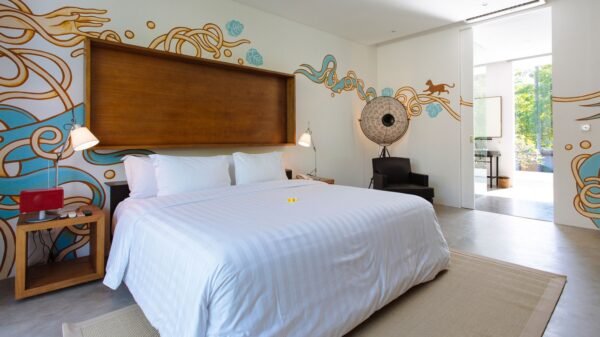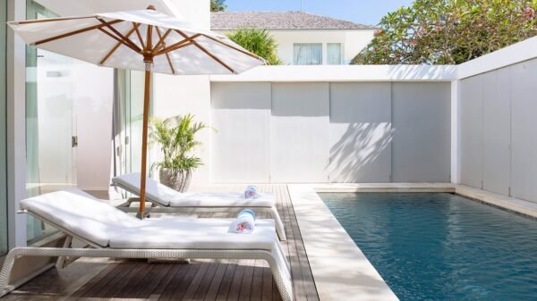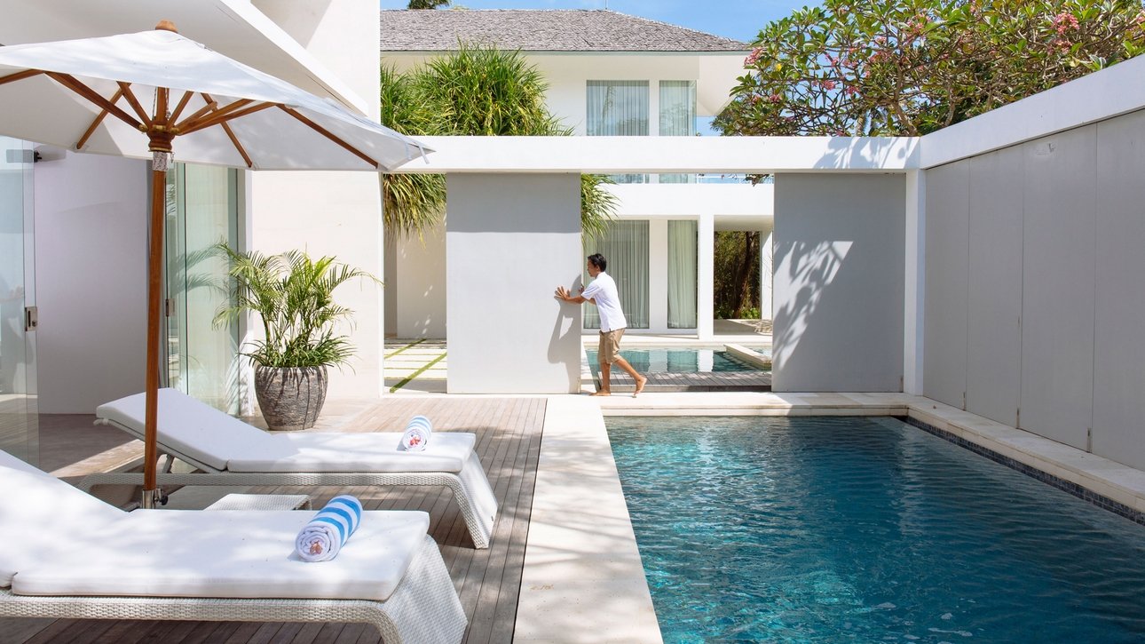 Bold, modern, and full of personality, this two-bedroom designer villa is just 100 meters from the surf and sand of Nelayan Beach. Featuring stunning murals and contemporary artwork by Indonesia’s top young artists, this villa blends gallery vibes with family-friendly comfort — ideal for both beach-loving friends and stylish families.