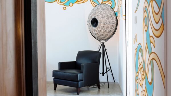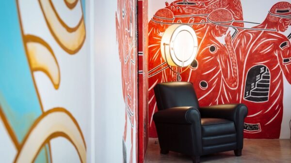The villa is a fashionable, two-bedroom designer villa situated only 100 metres from Nelayan Beach, in Canggu, and featuring eye-catching murals, paintings and sculptures from some of Indonesia’s leading young artists.