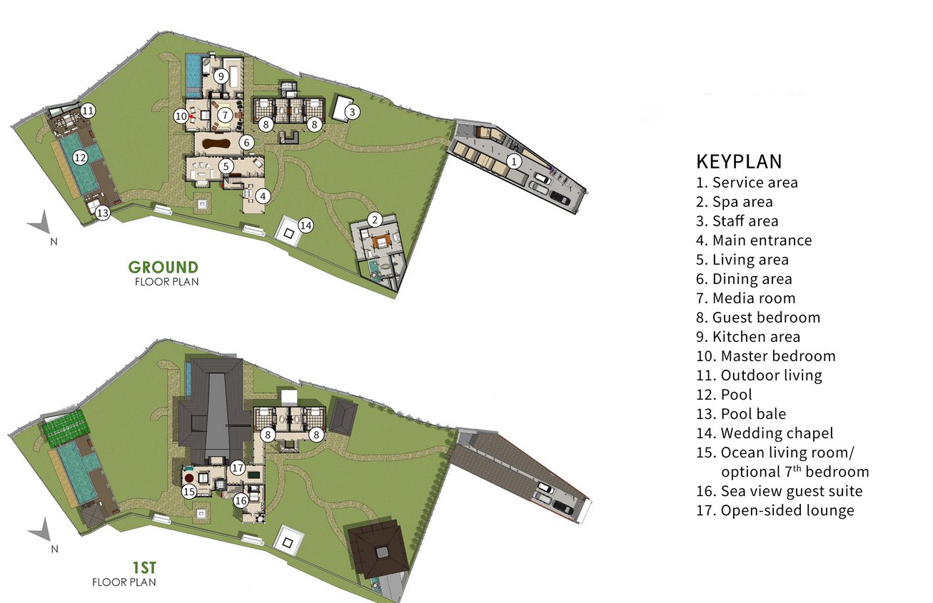 Personal service by the villa staff including a fulltime manager, housekeeper, security and attendants