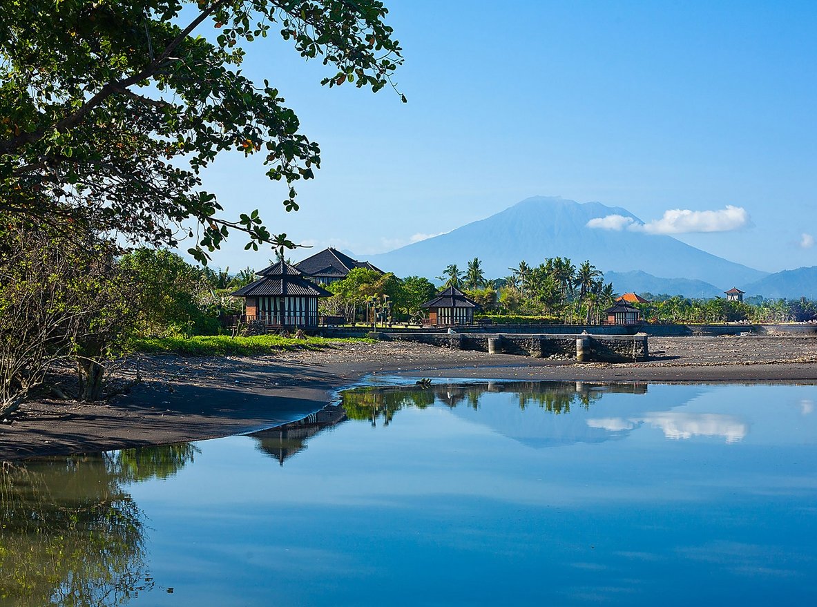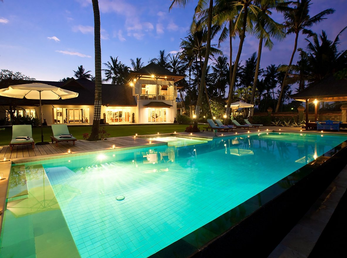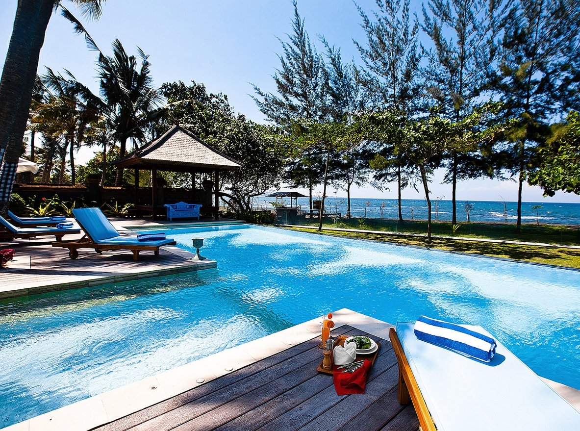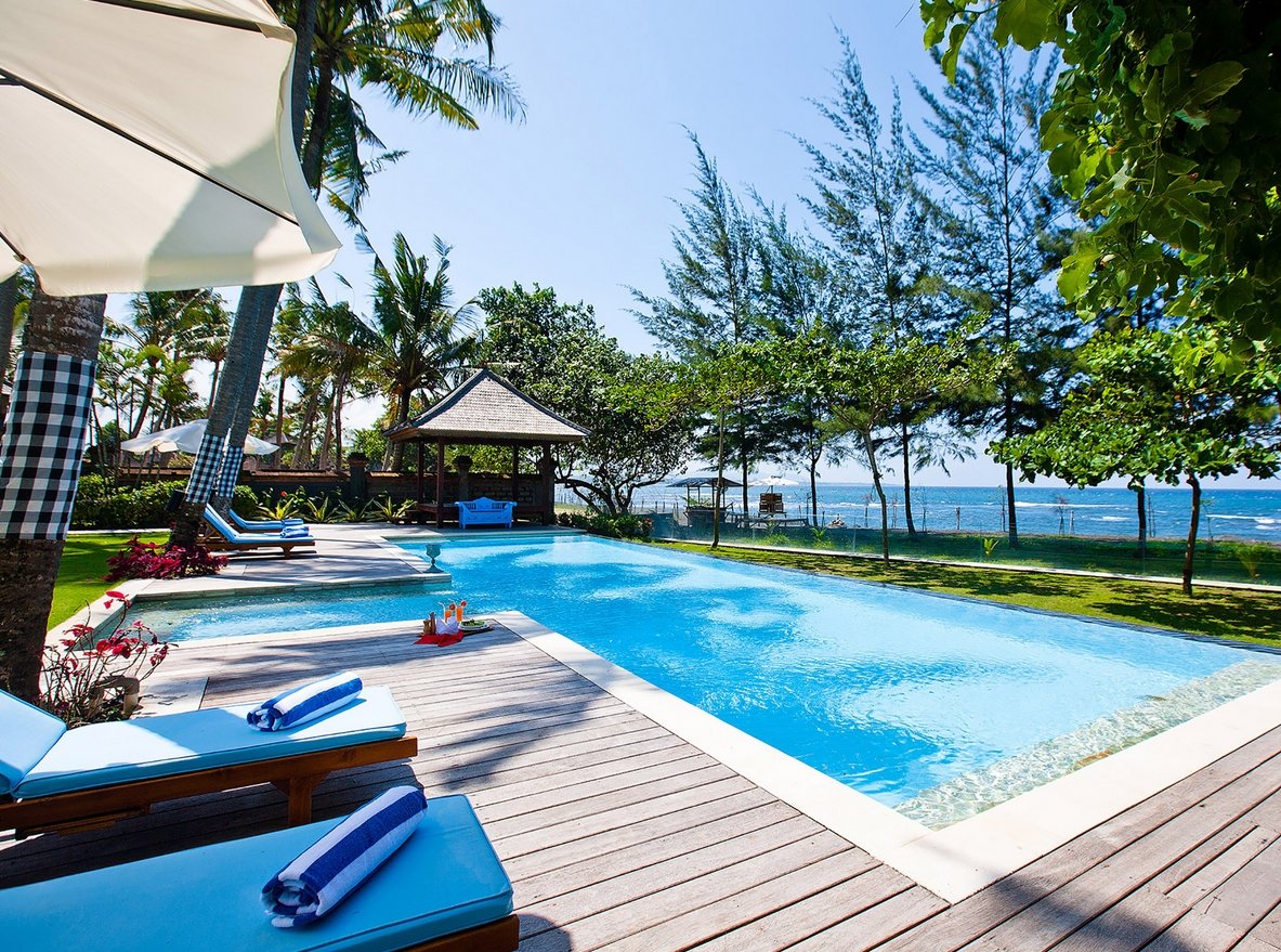 The six bedroom villa is set in beautifully landscaped gardens and enjoys an absolute location beachfront on the dramatic black sand surf beach. This six-bedroom contemporary-meets-colonial-style villa sits on a wild stretch of black-sand beach between the resort towns of Sanur and Candidasa on Bali’s south-eastern coast.