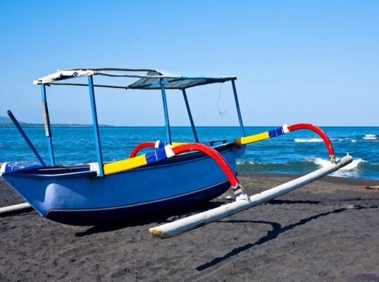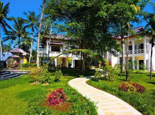 Set within beautifully landscaped tropical gardens, this stunning six-bedroom villa boasts a prime beachfront location on Bali’s dramatic black sand surf beach. Nestled between the charming resort towns of Sanur and Candidasa on Bali’s southeastern coast, the villa offers a perfect blend of contemporary and colonial elegance.