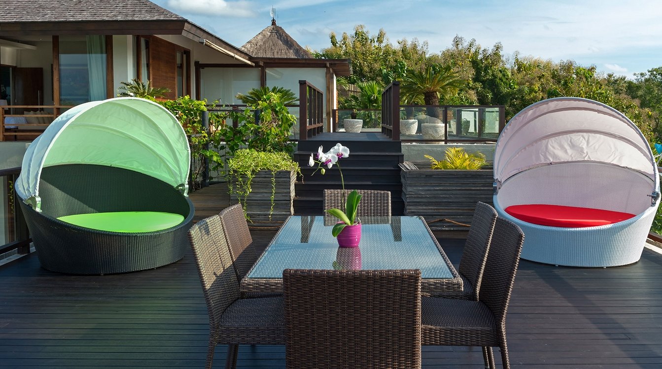The villa is a stunningly designed contemporary villa with sweeping views over Jimbaran Bay from its prime hilltop location. East meets west as traditional Balinese features fuse deliciously with marble, granite and local woods.
