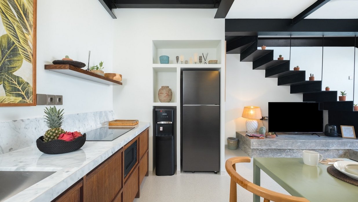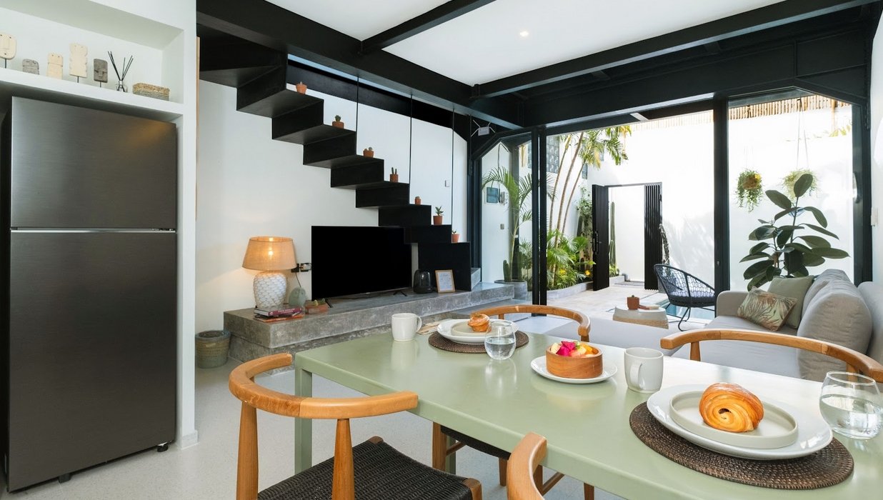 Step outside to your private tropical haven. The plunge pool offers a refreshing dip, while the outdoor lounge is perfect for enjoying morning coffee, sunset drinks, or leisurely afternoons. Surrounded by lush greenery, the outdoor area embodies the essence of island living.