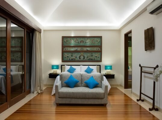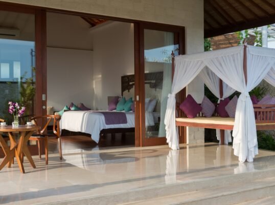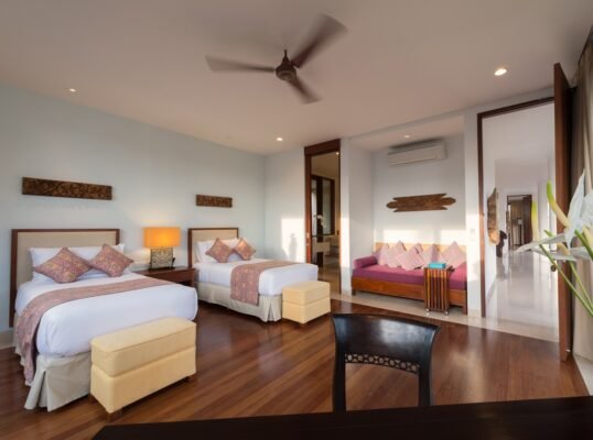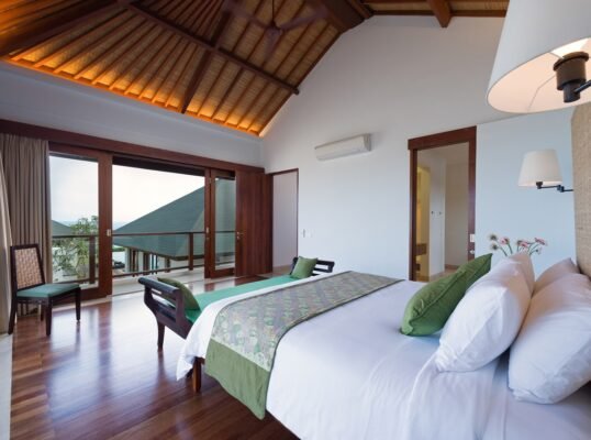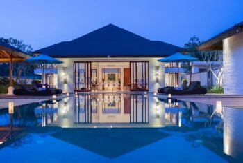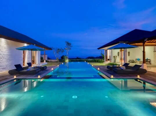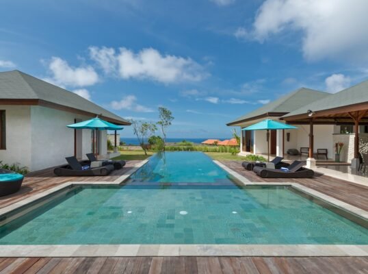 Perched high above the Indian Ocean on Bali’s dramatic Bukit Peninsula, this spacious 6-bedroom villa offers a serene and secluded setting — perfect for family holidays, group getaways, and unforgettable weddings. Set within a private luxury estate, the villa combines traditional Balinese design with lush tropical gardens, a 16-meter private pool, and sweeping ocean views from nearly every room.