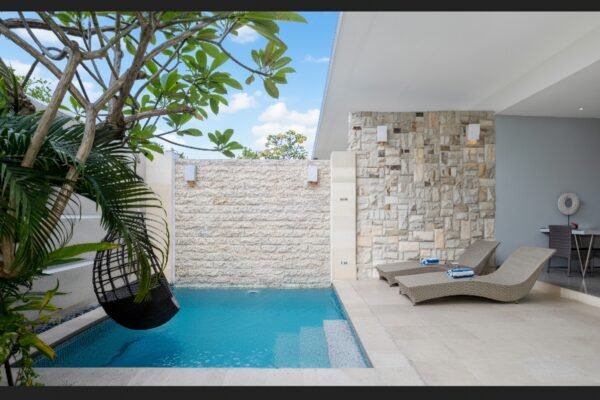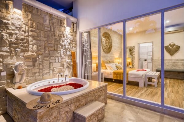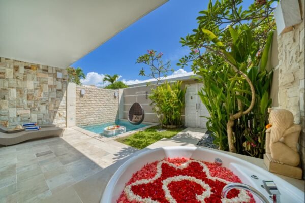 A romantic 1-bedroom villa in Legian, designed just for couples. With a private swimming pool, jacuzzi, and stylish interiors, it’s the perfect setting for a honeymoon or intimate getaway.