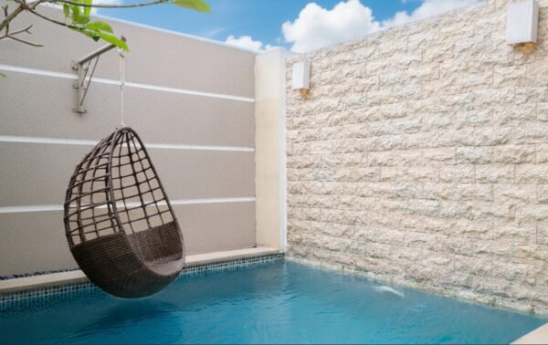 Step outside to your private sanctuary: a sparkling pool and jacuzzi side by side. Perfect for soaking in warm bubbles, swimming under the Bali sun, or simply relaxing with a book.