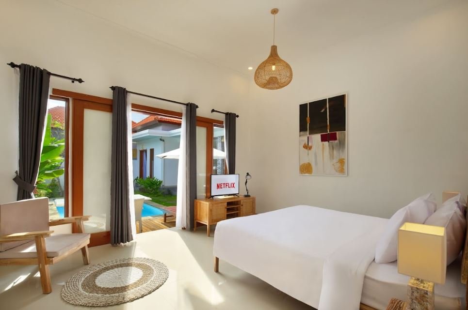 • Setiap kamar dilengkapi dengan AC, kamar mandi dalam, dan TV pintar dengan akses ke Netflix, Disney+, YouTube, dan lainnya.