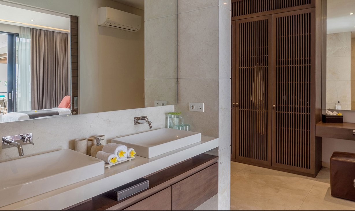This is a perfect villa to share with friends or family for a blissful Bali break. The five bedroom suites are equally sumptuous – all have ensuite bathrooms and four have king beds. Three of these bedrooms have either bathtubs or jacuzzi tubs overlooking the ocean waves, while the fifth bedroom suite is twin-bedded and has direct access to the pool deck where our cliff-edge infinity pool merges with the turquoise sea.