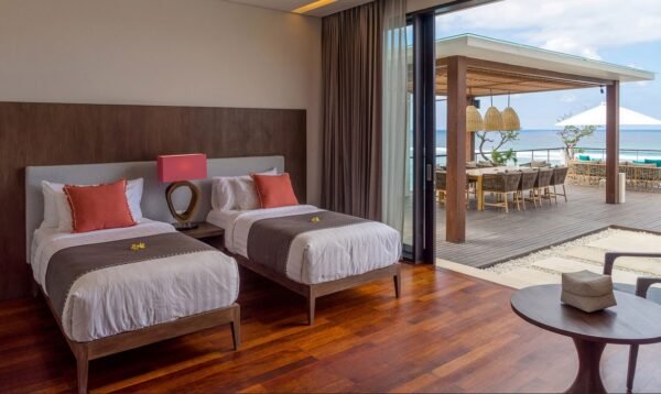 Welcome to a cliffside masterpiece in Bali’s prestigious Nusa Dua coastline, where panoramic ocean views, ultra-luxury facilities, and personalized service come together for the ultimate island escape. With five beautifully appointed suites—including a honeymoon-worthy master suite with private jacuzzi—this villa is designed for those seeking both indulgence and serenity.