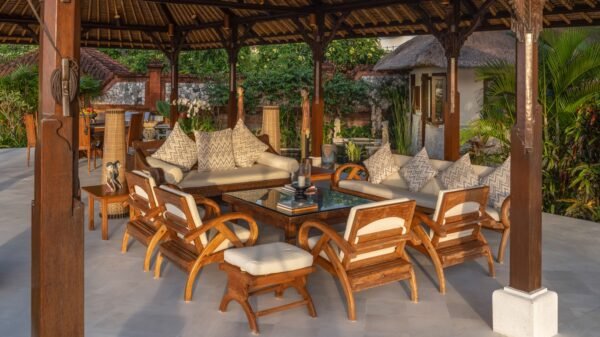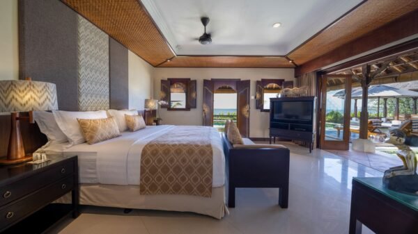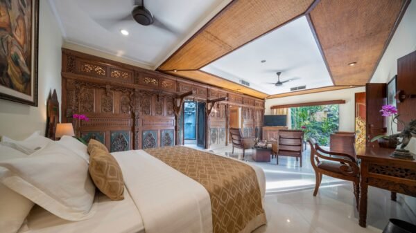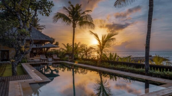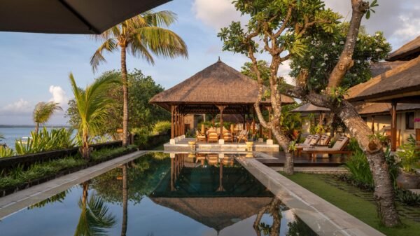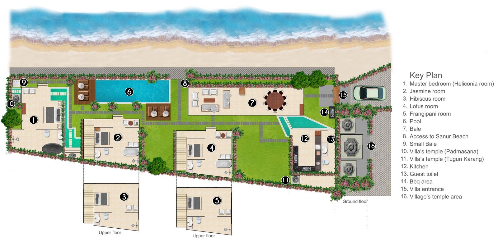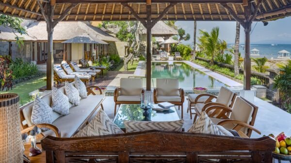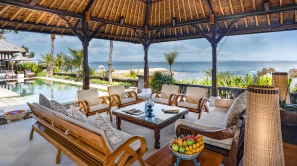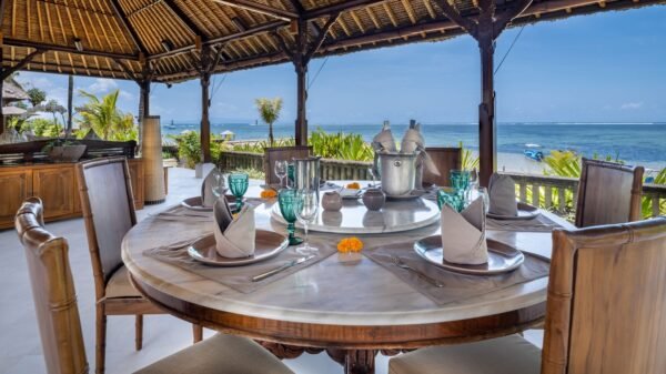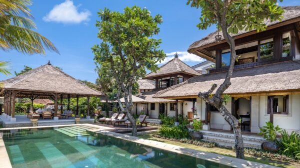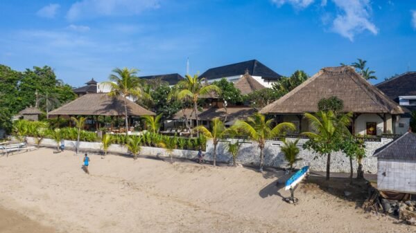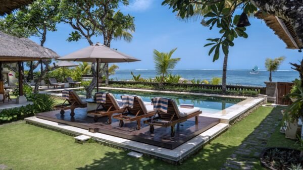 Wake up to the sound of waves and step directly onto the sand from your tropical beachfront retreat in the heart of Sanur. With 60 metres of absolute beachfront and uninterrupted sea views from every suite and pavilion, this multi-pavilion Balinese-style villa offers a relaxed island lifestyle with the perfect blend of charm, comfort, and location.