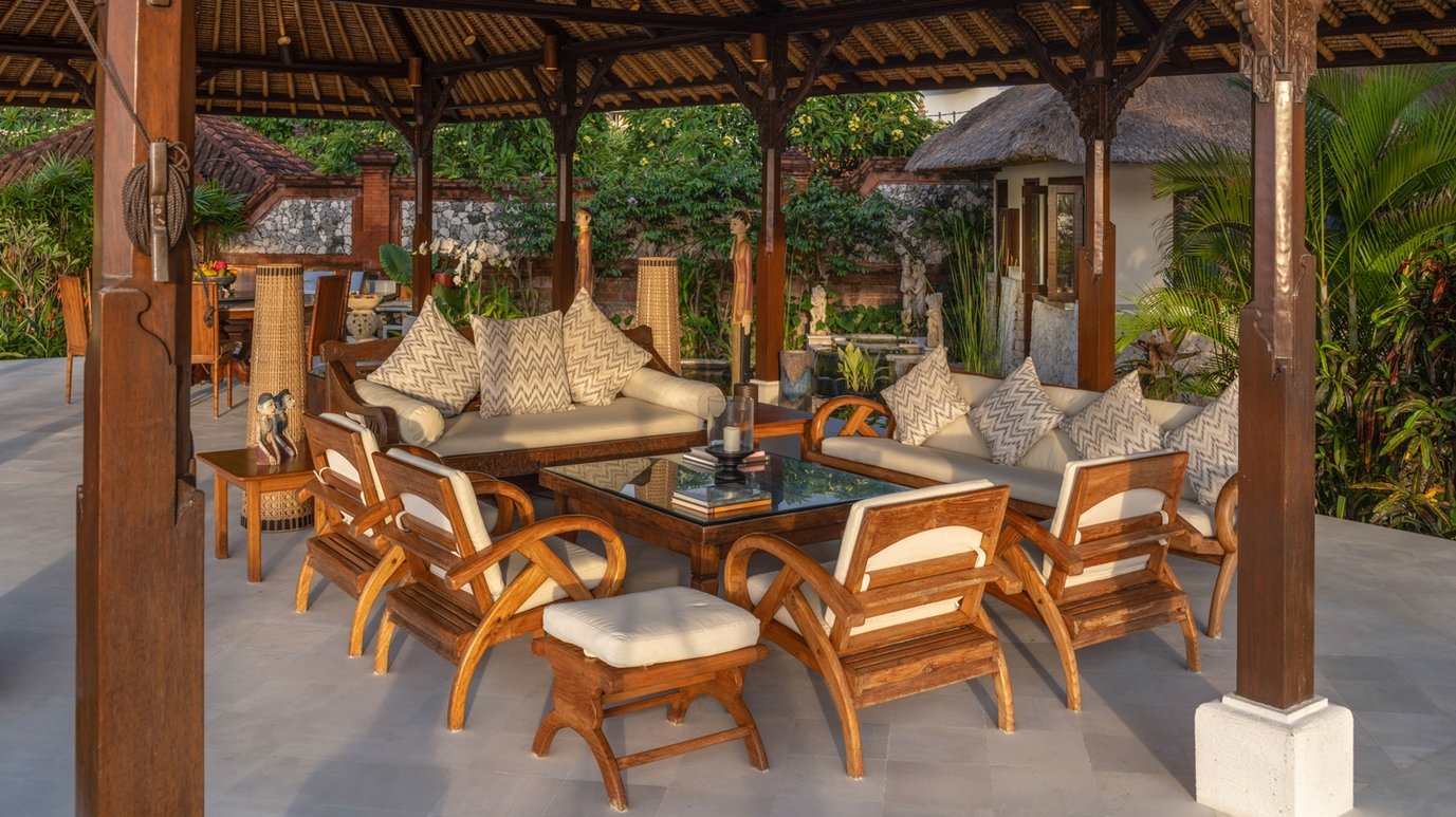 You can’t find a better location in Sanur than this villa! This multi-pavilion Bali-style villa is spread across 60 metres of absolute beachfront land, with direct beach access and fantastic sea views from the open-sided living pavilion, large master suite, and all four ensuite guest bedrooms.