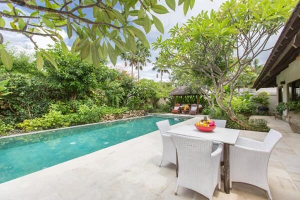 Welcome to your serene getaway in the heart of Seminyak, Bali. This beautifully styled 3-bedroom villa features an expansive private pool, traditional Balinese gazebos, lush tropical gardens, and a peaceful atmosphere — all just a 10-minute walk from Seminyak Beach.