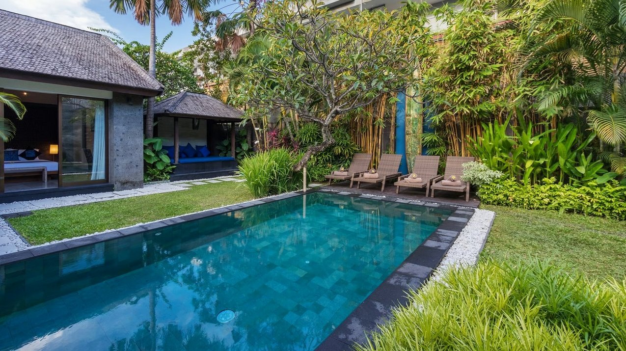 - Poolside lounging area ideal for sunbathing, reading, or relaxing naps