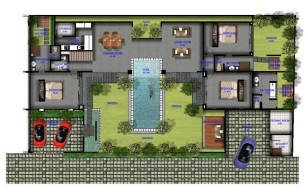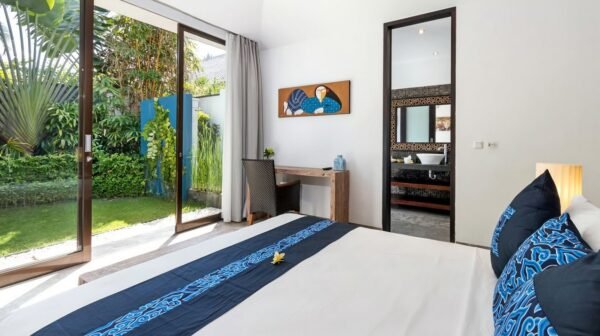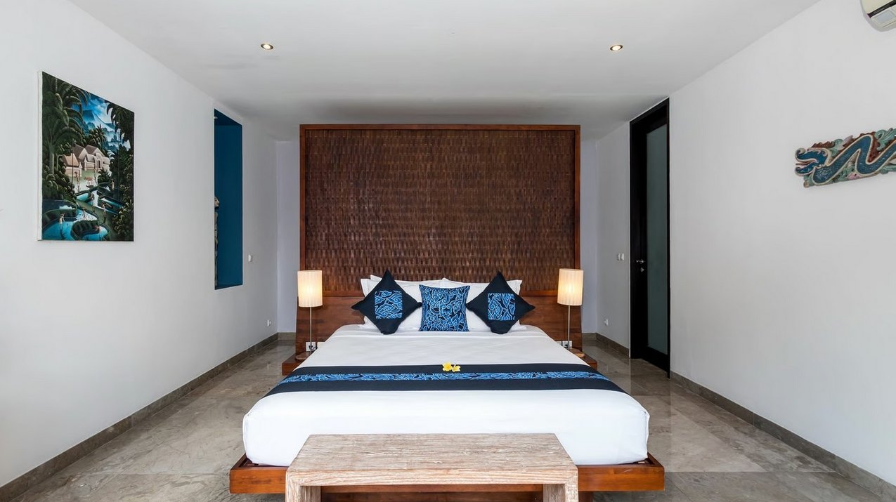 - 4 air-conditioned bedrooms, each styled with serene blue tones