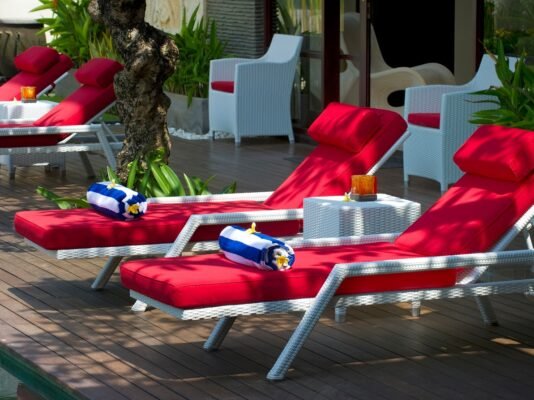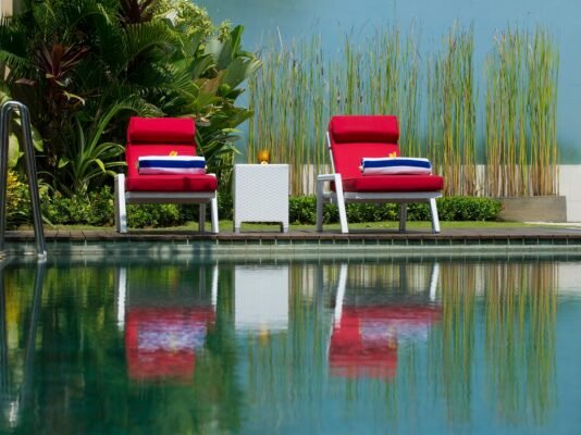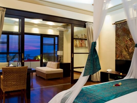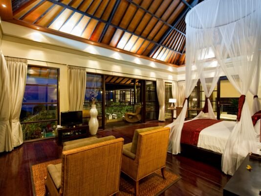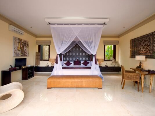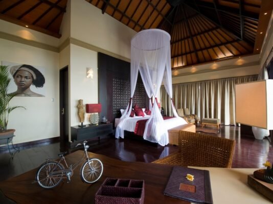 • Writing desks, wardrobes, and Balinese décor