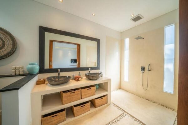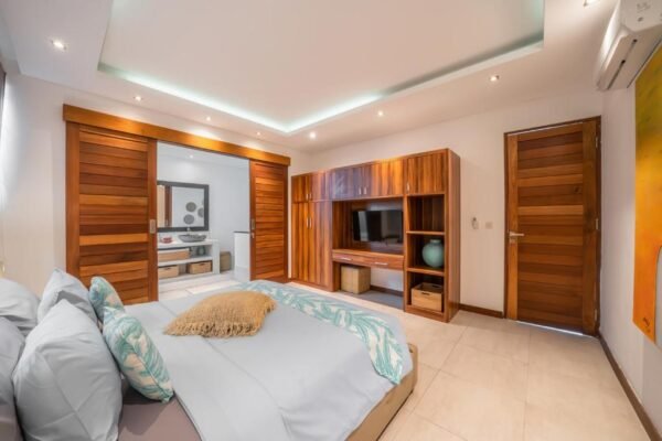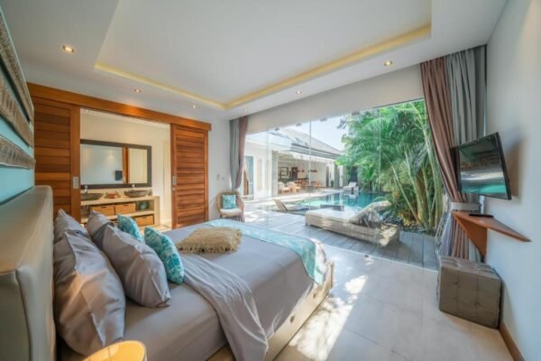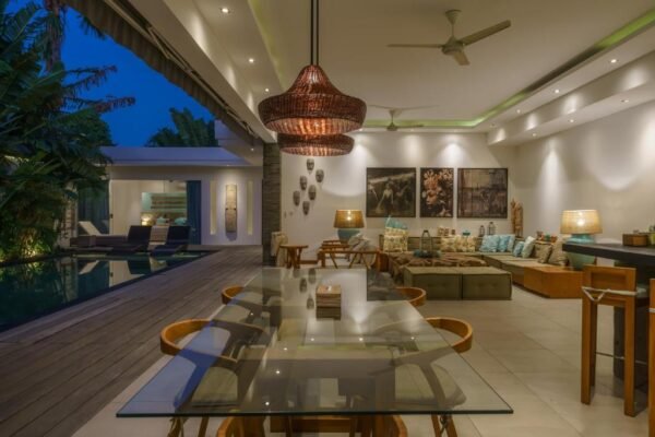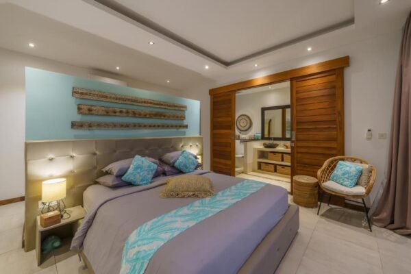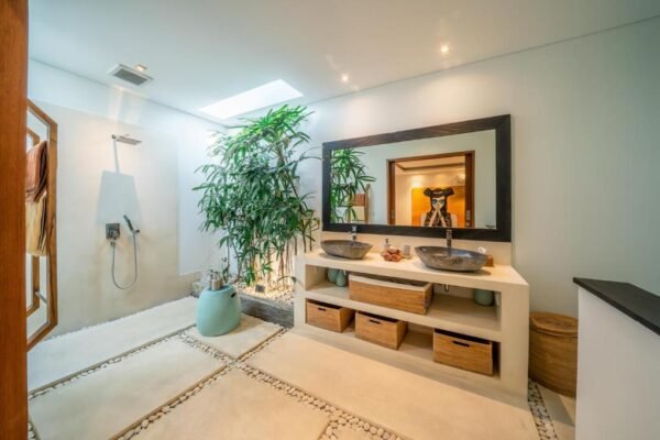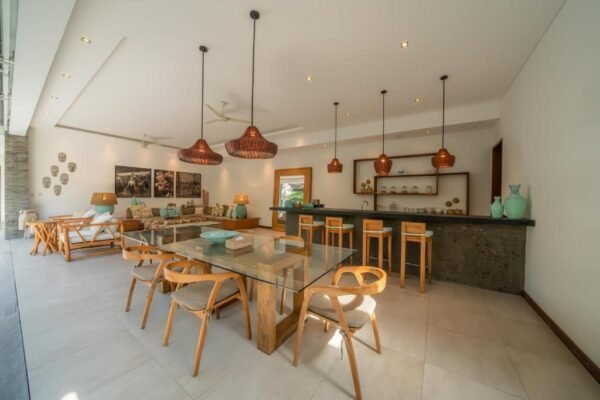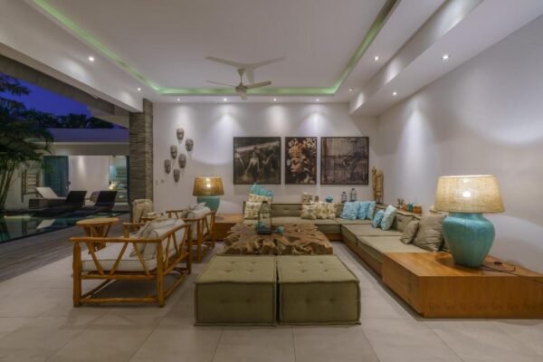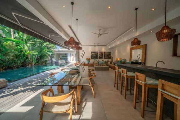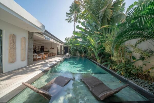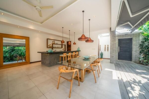 This modern 3-bedroom villa is your private retreat just 5 minutes from Seminyak Beach. With an uncluttered design, tropical garden setting, and spacious open living area, it’s the perfect balance of comfort, style, and location — ideal for families, couples, or friends traveling together.