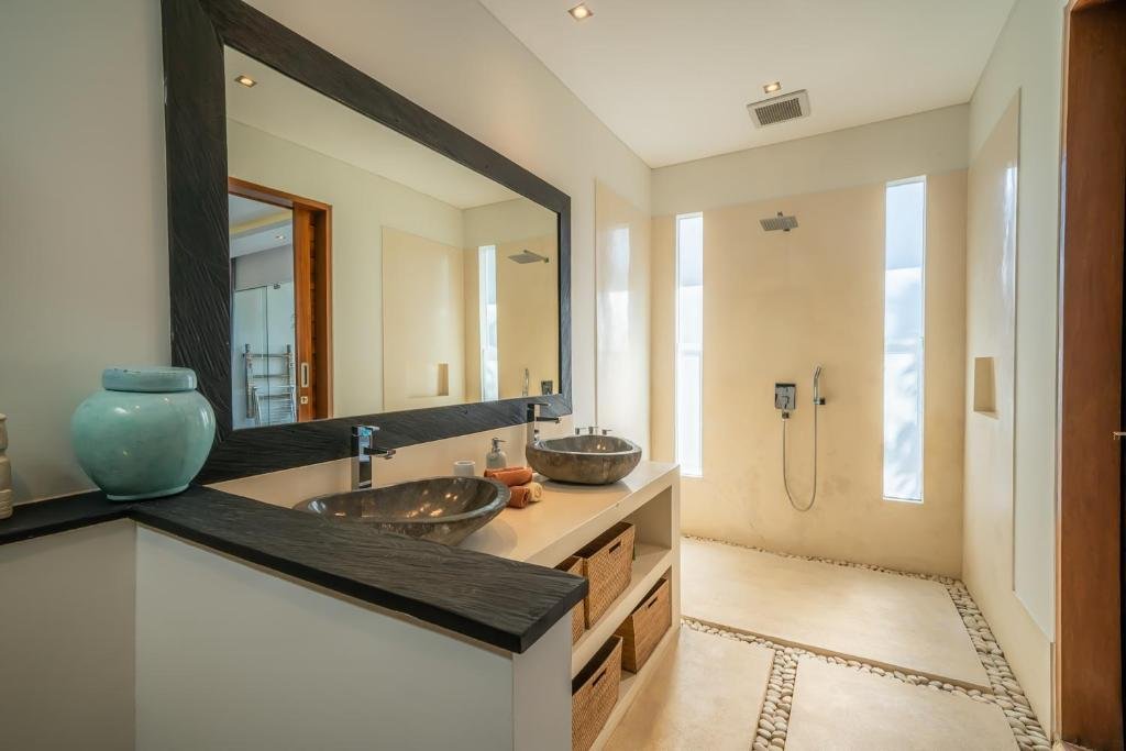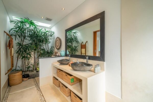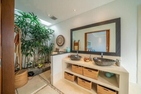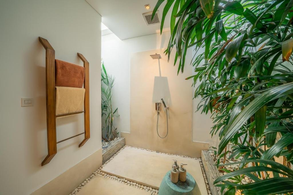 - Minimalist design with tropical touches for a clean and calming feel