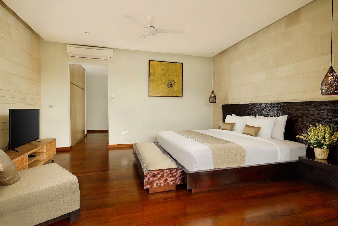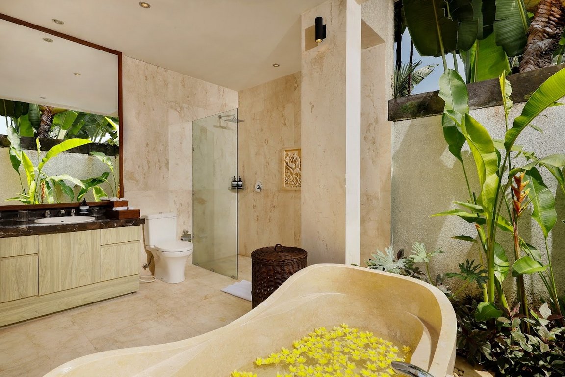 Villa private villa’s five bedrooms are located in a separate two-storey pavilion overlooking the pool, Jacuzzi and beautifully presented tropical gardens. The pavilion consists of two ground floor master suites each with indoor/outdoor en-suite bathrooms complete with stylish solid marble bath, two showers and elegant finishes throughout.