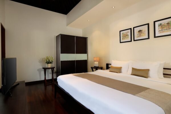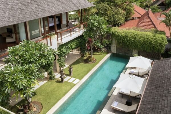 Welcome to your tropical paradise. This exclusive five-bedroom private villa offers the perfect blend of luxury, comfort, and traditional Balinese charm. Nestled within beautifully landscaped tropical gardens, the villa’s two-storey sleeping pavilion overlooks a stunning 15-meter private pool with Jacuzzi, creating the ultimate setting for relaxation and indulgence.