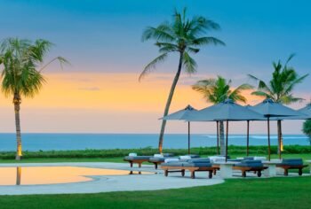 ✔️ Expansive beachfront lawn and elegant garden pavilions