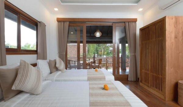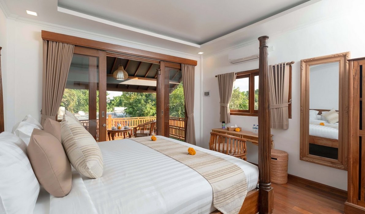 The estate features nine spacious bedrooms across two villas, each designed for comfort and tranquility: