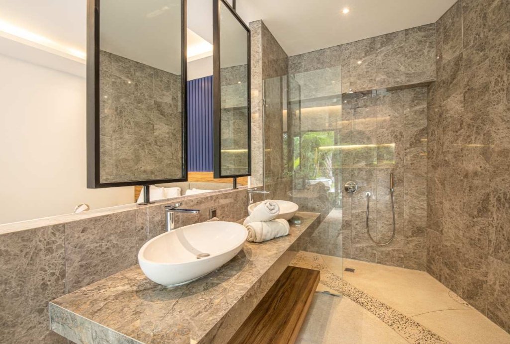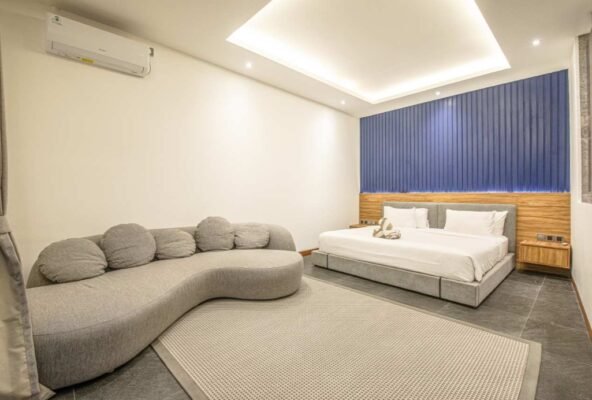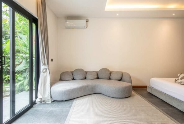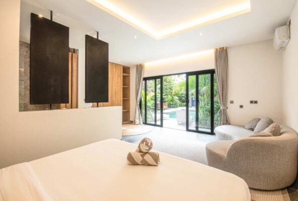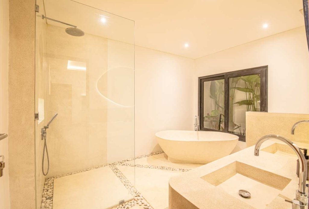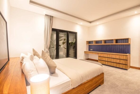 The villa offers three spacious bedrooms, each designed for comfort and convenience. Every bedroom includes: