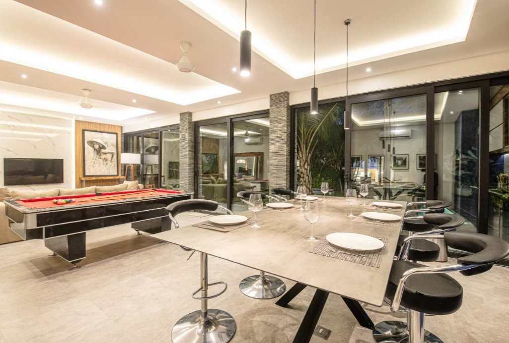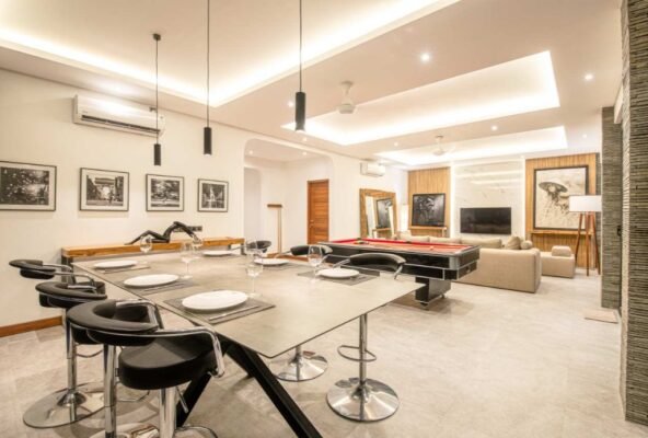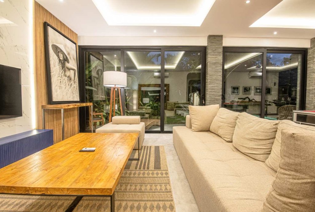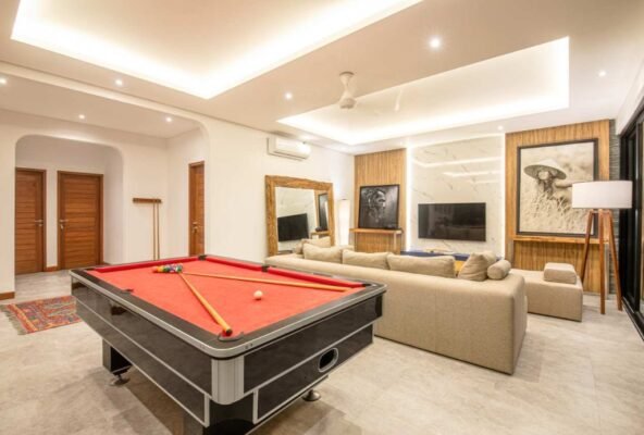 Surrounded by lush greenery, the villa features a private swimming pool, comfortable outdoor lounging areas, and a cozy gazebo ideal for lazy afternoons. Inside, you’ll find modern interiors, a fully equipped kitchen, and a pool table—perfect for unwinding after a day out.