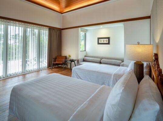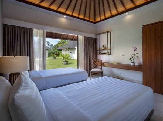 Start your day with an included breakfast, then explore a menu of Balinese, Indonesian, and international dishes prepared by your in-villa chef. Beyond dining, the estate offers a gym, spa, and children’s play area—perfect for families. A dedicated team of staff ensures seamless service throughout your stay.