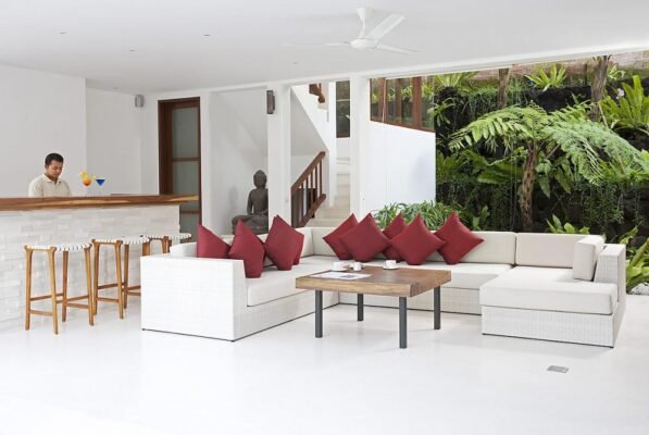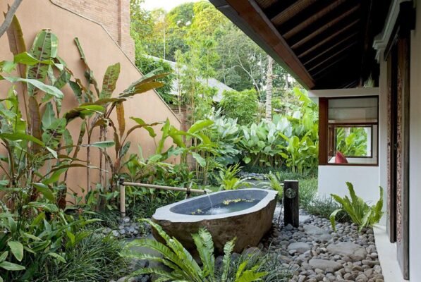 - Indoor/outdoor blend of traditional Balinese and modern design