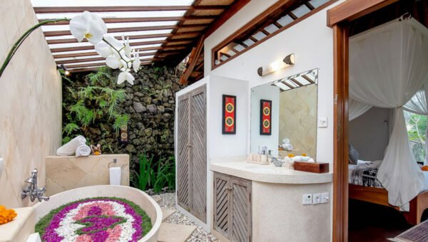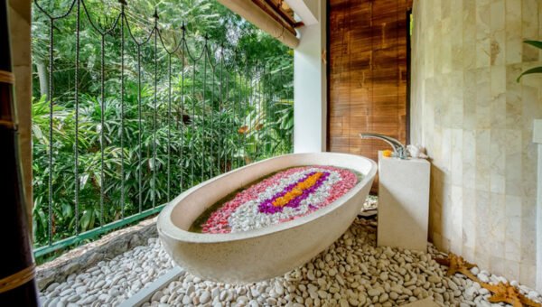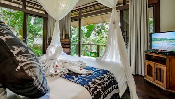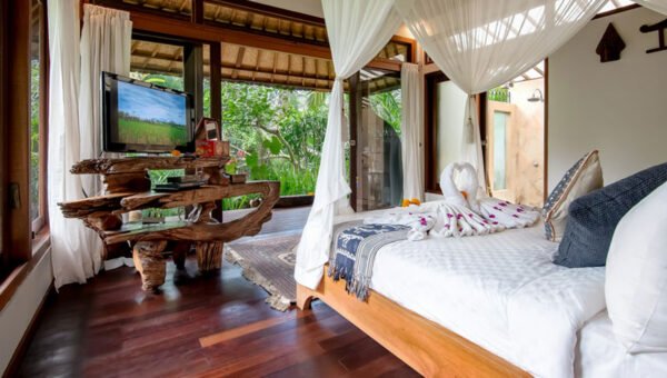 Stroll through verdant rice fields and quaint villages before reaching your peaceful retreat via a charming cobbled pathway. The villa’s natural setting invites you to slow down, recharge, and create unforgettable memories surrounded by Bali’s natural beauty.