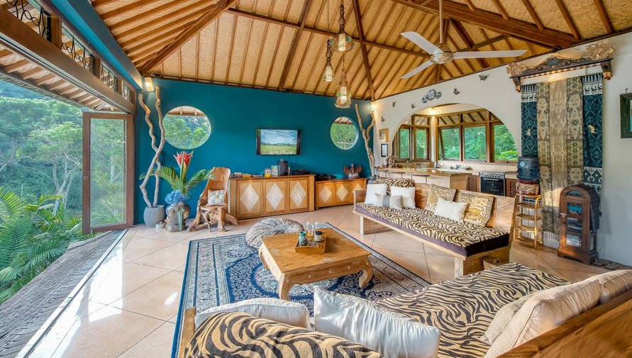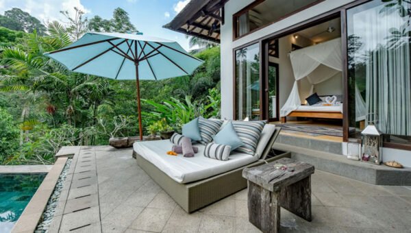 Located on a spacious 3,100m² plot, the villa sits above the beautiful Mas River Valley, offering mesmerizing valley views framed by vibrant tropical flowers and forest greenery. The soothing sounds of the river and birdsong create a perfect backdrop for total relaxation.