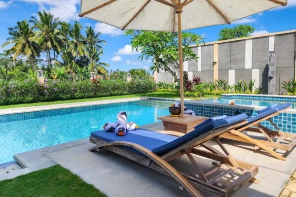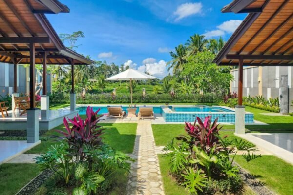 Hidden among lush rice fields and just a 15-minute drive from Ubud Center, these elegant villas offer a peaceful escape while keeping you close to the cultural and spiritual heartbeat of Bali. Designed with couples, families, and groups of friends in mind, each villa blends modern comfort with tropical charm, creating the perfect base for a relaxing stay.