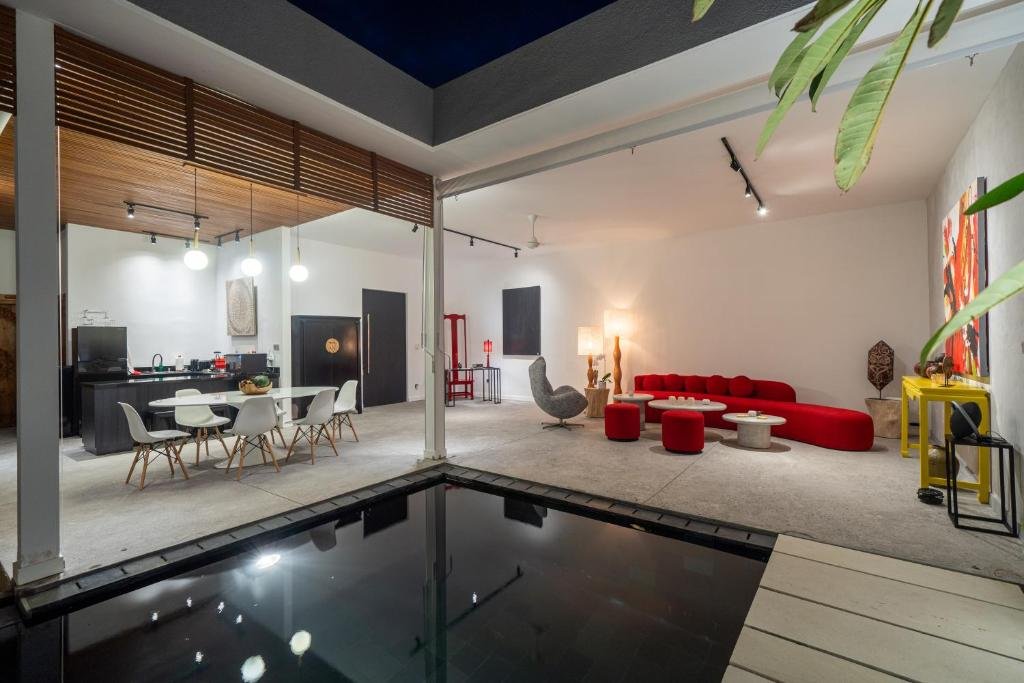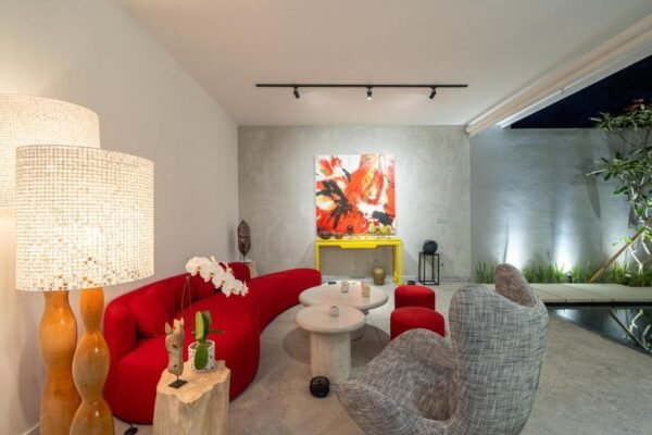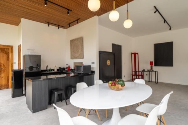 Tucked just minutes from the heart of Ubud, this modern loft villa offers a tranquil escape surrounded by greenery. With its clean lines, raw concrete textures, and minimalist design, the space instantly creates a sense of openness, light, and freedom. It’s a home that invites you to slow down, breathe deeply, and truly relax.