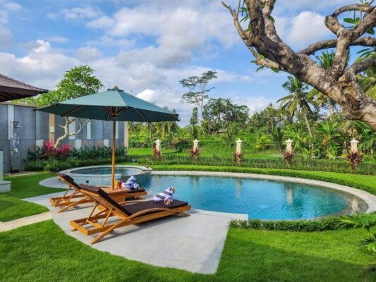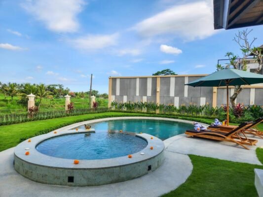 Tucked away among lush rice fields, just 15 minutes from Ubud Center, this serene villa offers the perfect mix of privacy and convenience. With two spacious bedrooms, a private pool, and an outdoor jacuzzi, it’s designed for couples, families, or friends seeking a peaceful Bali retreat.