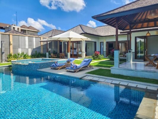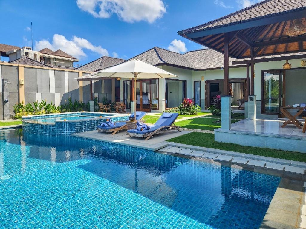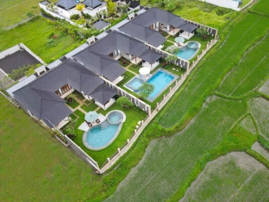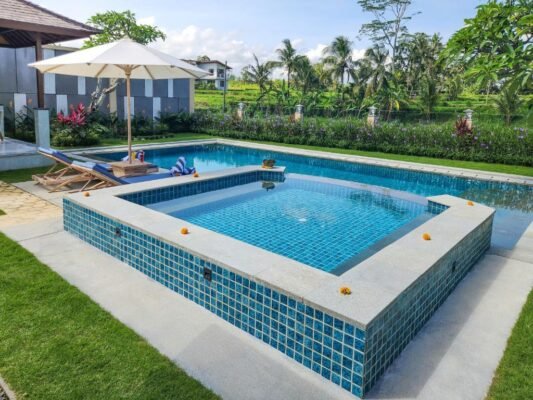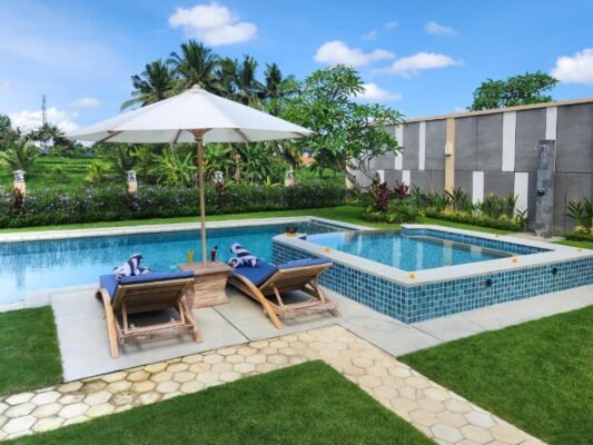 Nestled among lush rice fields and just 15 minutes from Ubud Center, this peaceful retreat offers a perfect balance of privacy and convenience. Each villa features two spacious bedrooms, a private swimming pool, and an outdoor jacuzzi — thoughtfully designed for couples, families, or friends looking to relax in comfort and style.