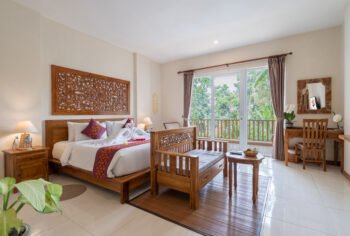 Experience comfort and privacy in a beautifully designed One-Bedroom Suite, ideal for couples or solo travelers seeking a tranquil Ubud escape.