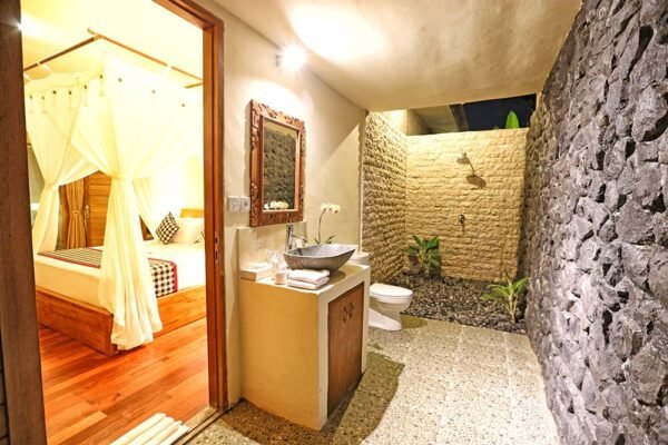 With a private pool, modern facilities, and views of the lush valley, it’s ideal for couples, families, or friends looking for an authentic Balinese hideaway.